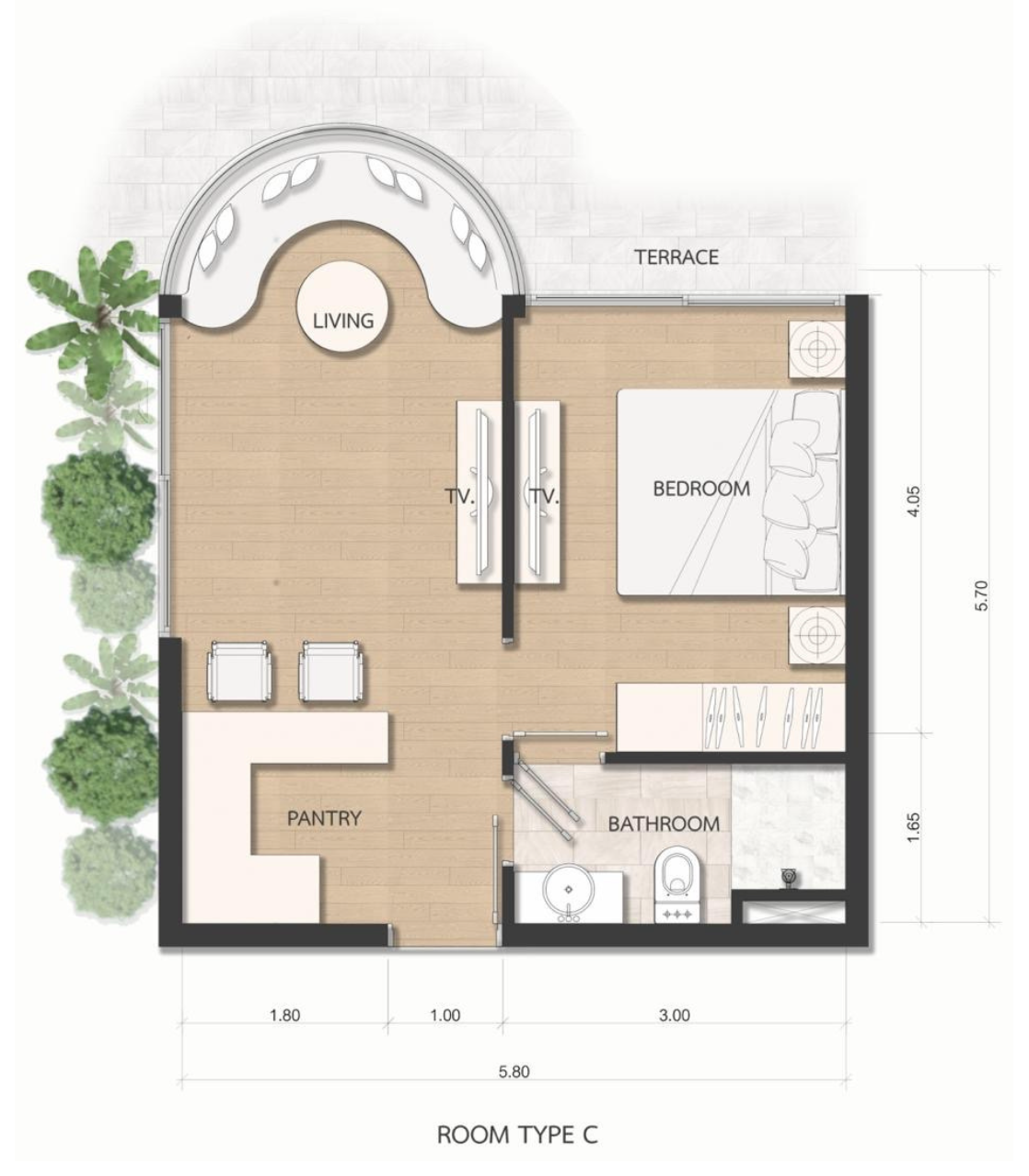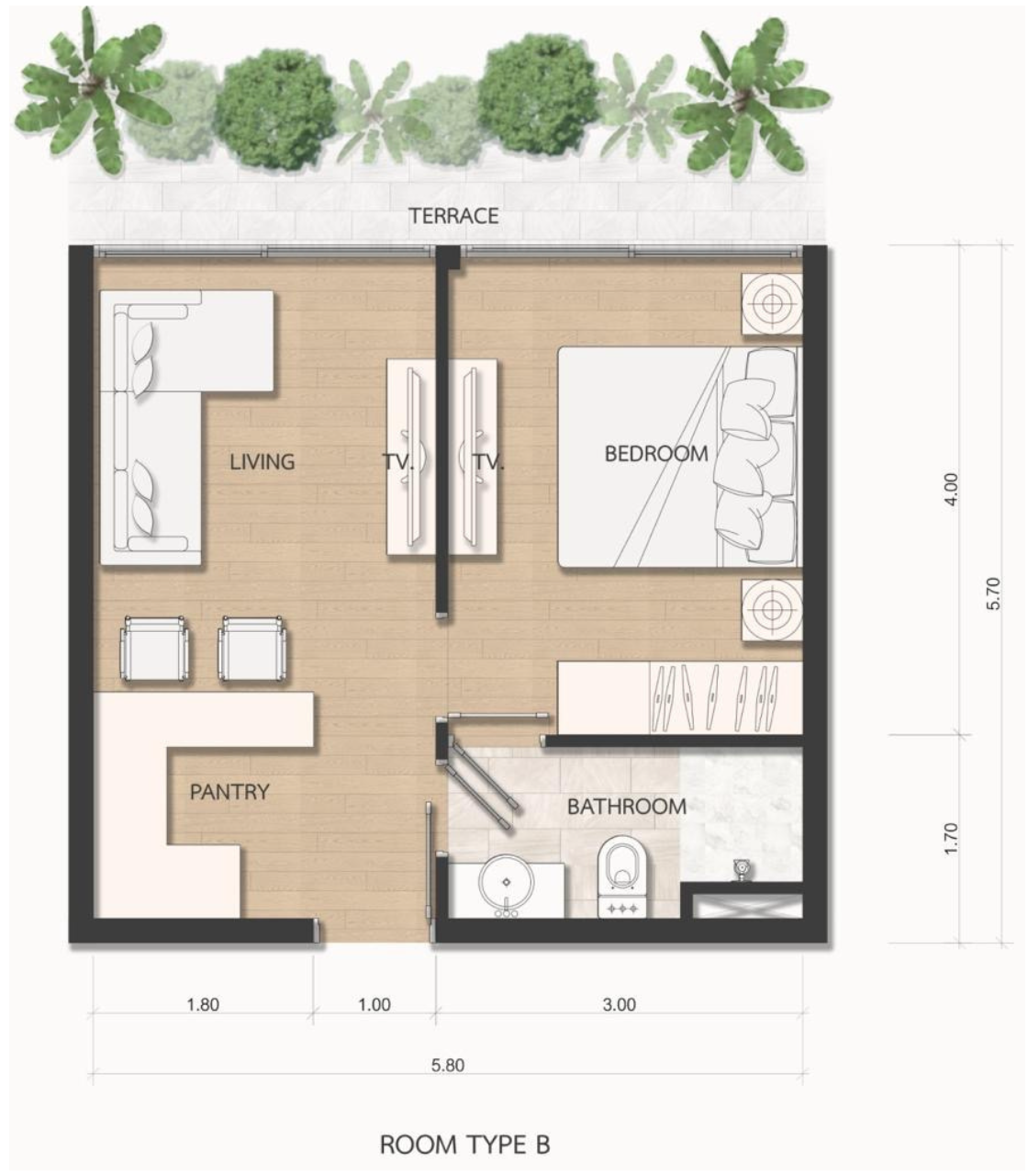 1 bedroom 1 bathroom apartment – 38 sq. m.